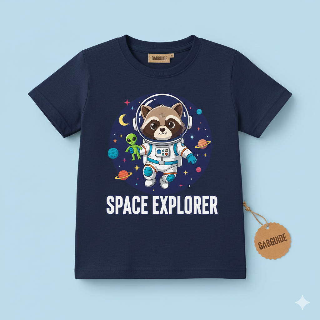 A raccoon exploring outer space theme.